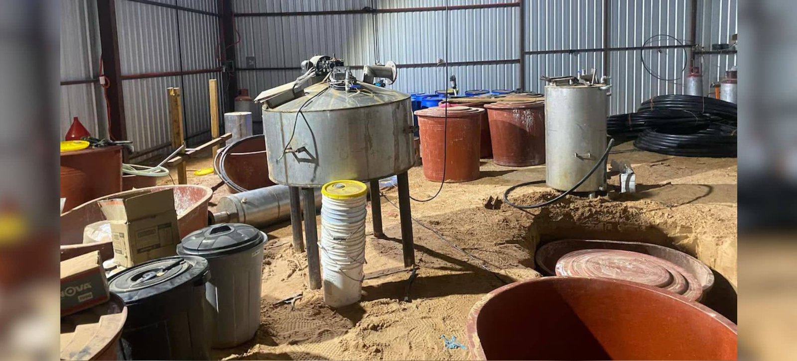 Serán miembros de la Fiscalía General de la República (FGR) los encargados de revisar el lugar cuando pueda realizarse el cateo. Las imágenes muestran parte de los artefactos hallados en el sitio: tinas, tanques de gas y mangueras.