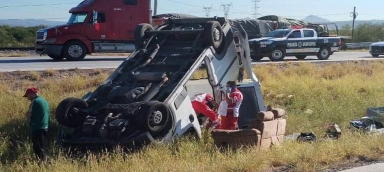 Dos personas prensadas y 10 lesionadas fue el saldo que dejó la salida del camino y volcadura de un vehículo de transporte de personal, que se registró sobre la carretera Internacional México 15, en el tramo conocido como Boca Abierta.…